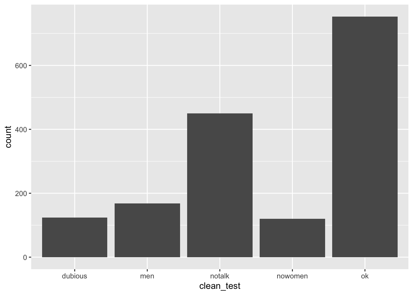 The data are stored as a CSV (comma-separated values) file in your repository’s data folder. Let’s read it from there and save it as an object called bechdel.