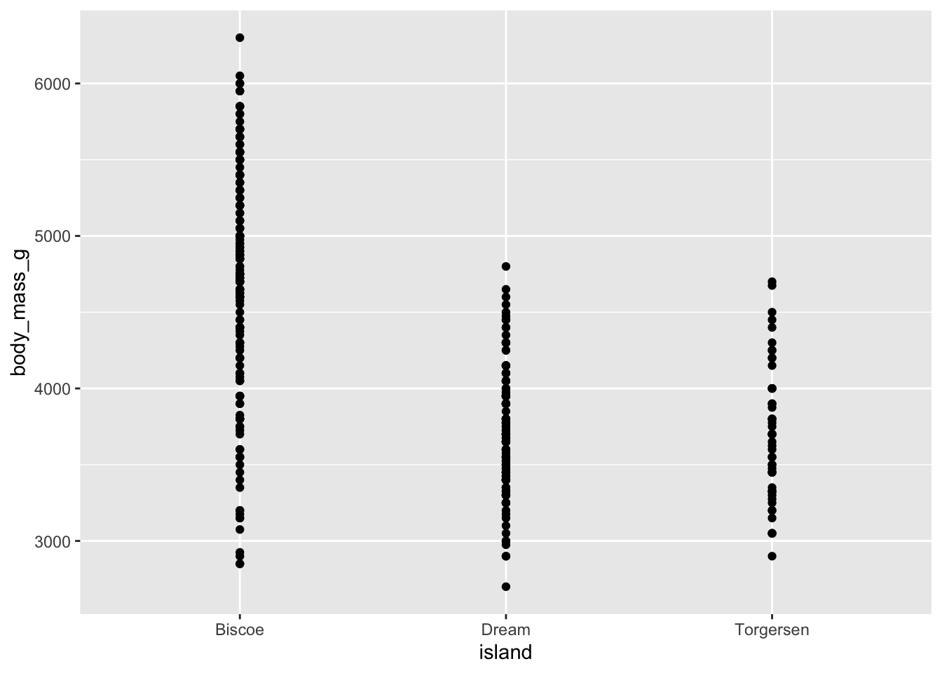 ggplot(penguins, aes(x = island, y = body_mass_g)) +