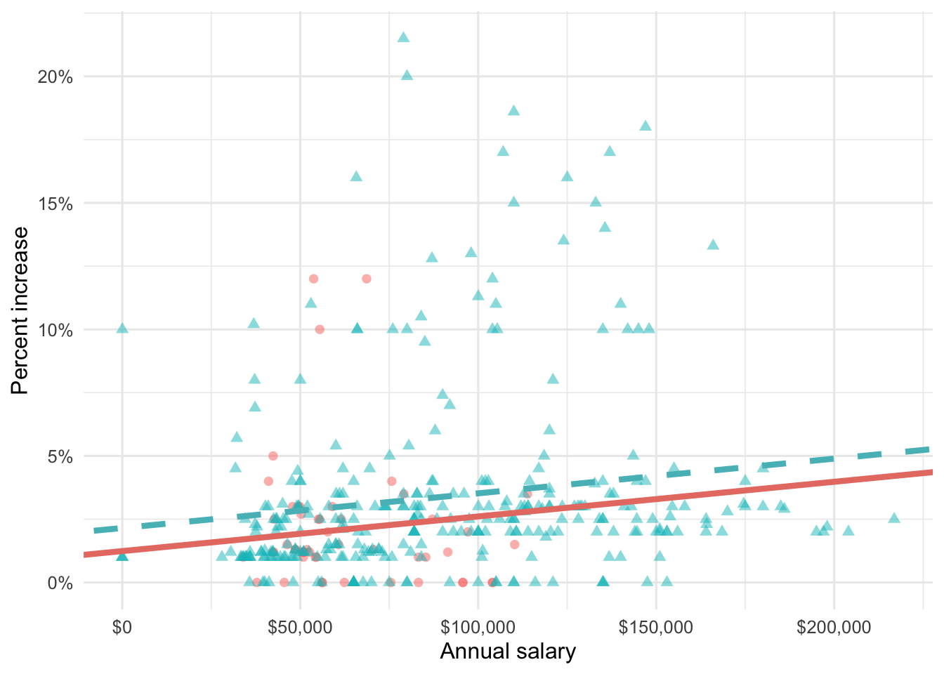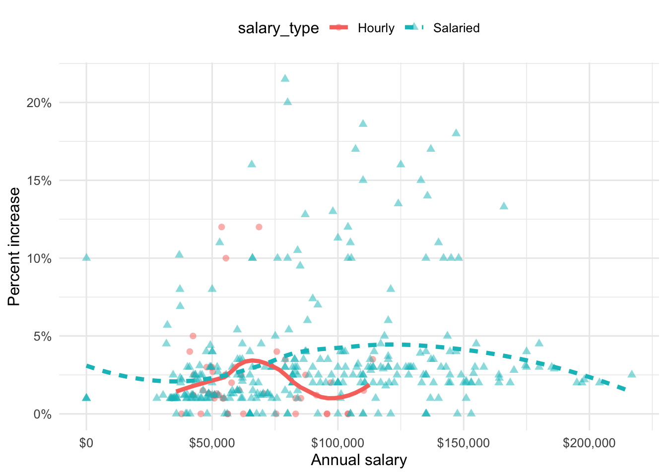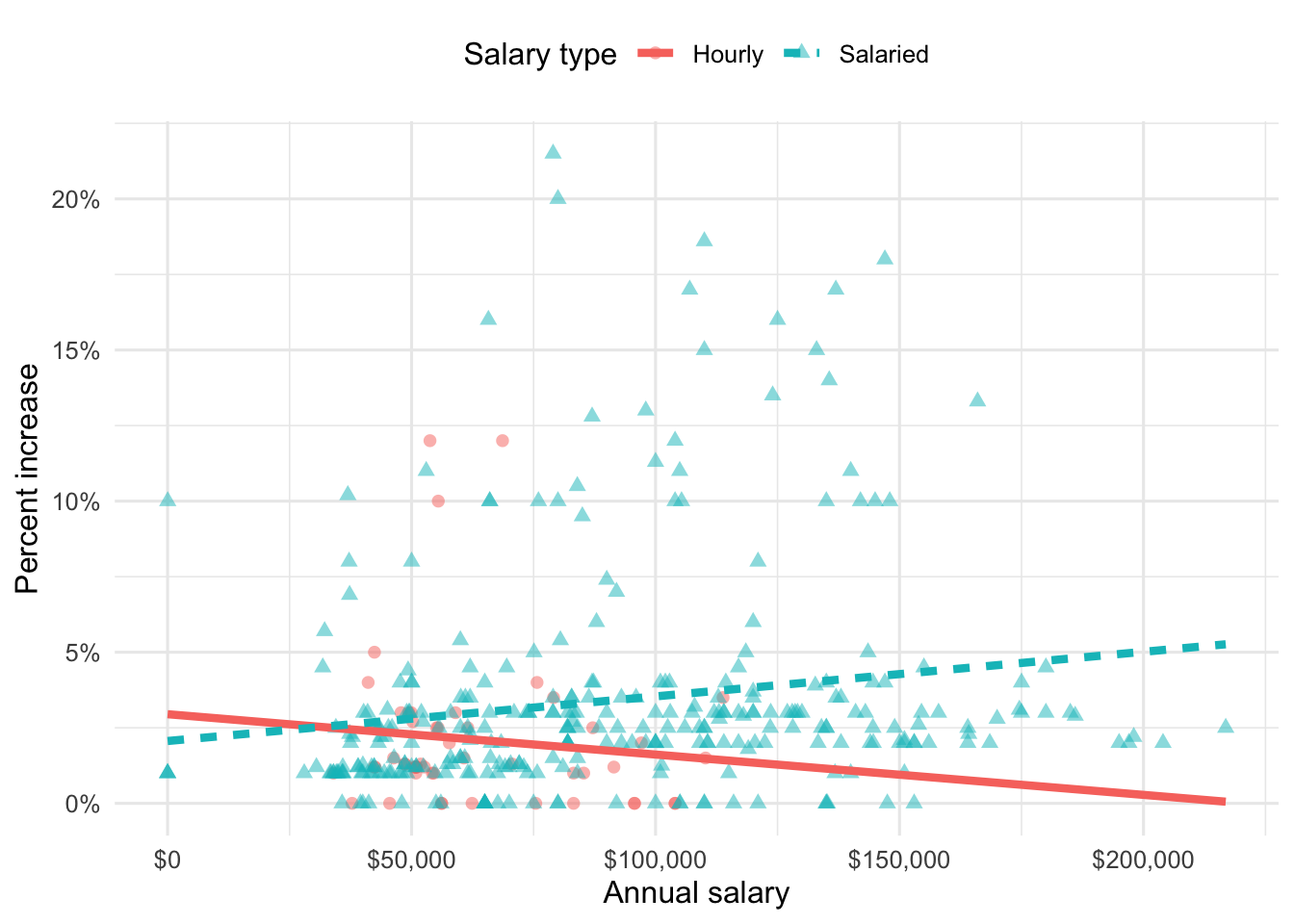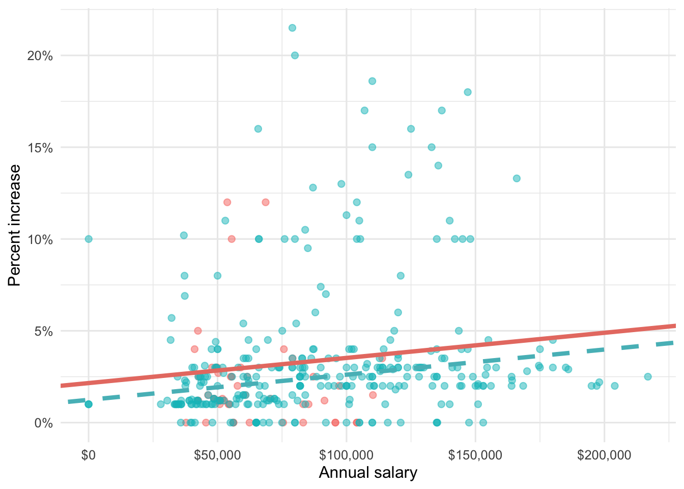 linear_reg() |> fit(_BLANK_, df)? What goes in the blank? What purpose does that argument serve, and how do you use it? - Let \(\hat{y}^{(\text{old})}\) be the prediction at \(x\) of a simple linear regression, and let \(\hat{y}^{(\text{new})}\) be the prediction at \(x+1\) of the same regression. How are \(\hat{y}^{(\text{old})}\) and \(\hat{y}^{(\text{new})}\) related? In other words, how does the prediction of the simple linear regression model change when you change the input from \(x\) to \(x+1\)?