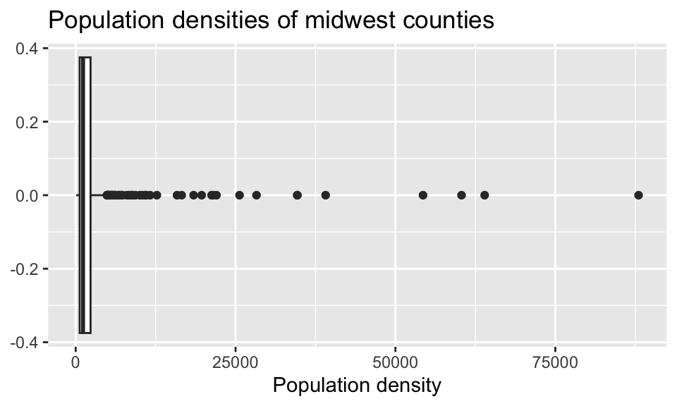 Return to the following box plot of population densities where you were asked to identify at least one outlier.