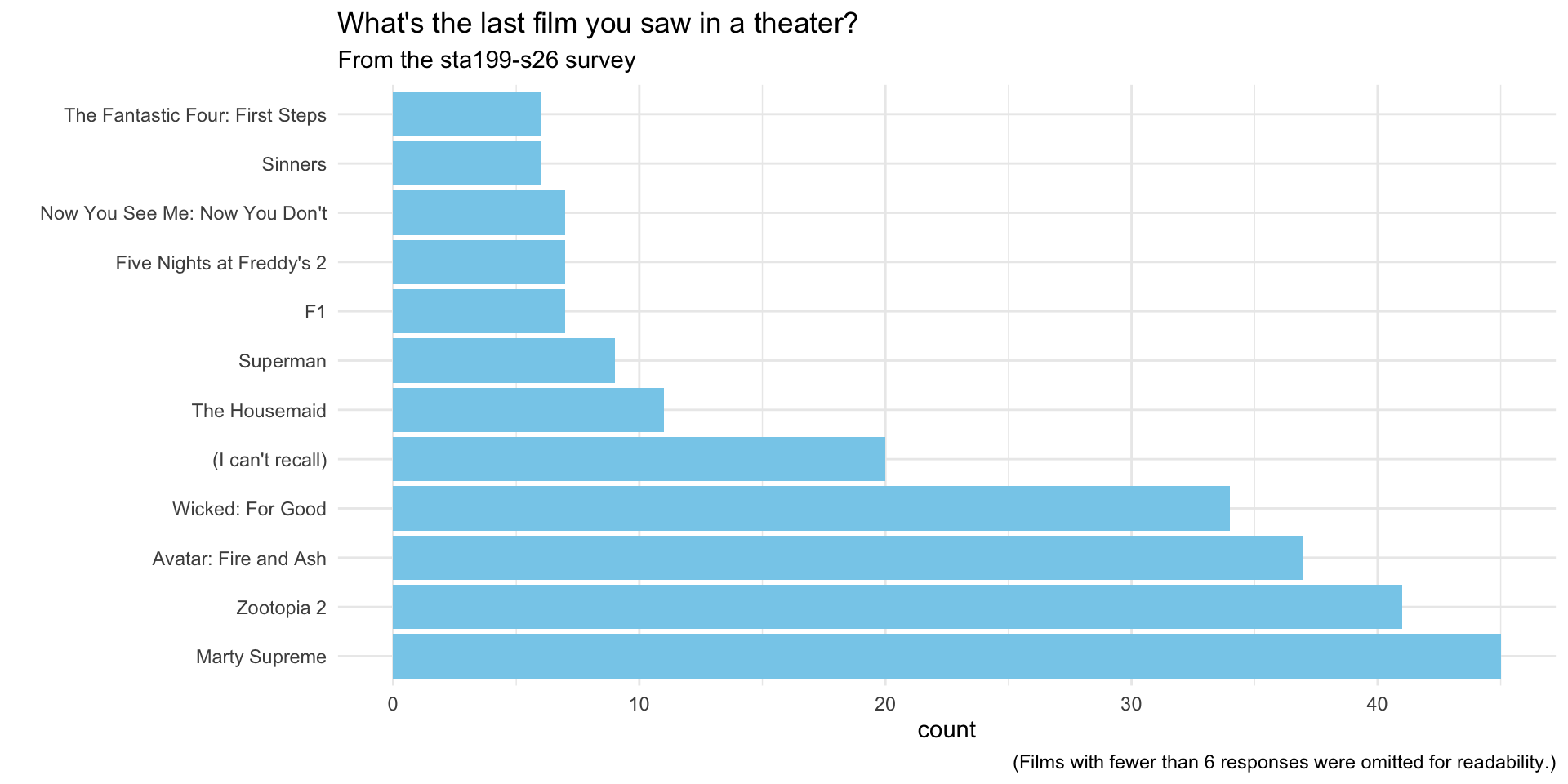 caption = "(Films with fewer than 6 responses were omitted for readability.)")