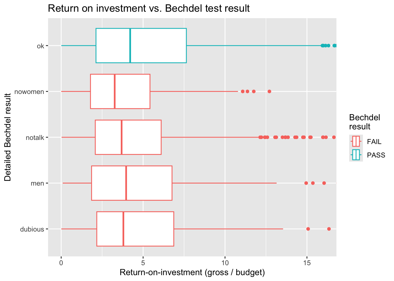“We did a statistical analysis of films to test two claims: first, that films that pass the Bechdel test — featuring women in stronger roles — see a lower return on investment, and second, that they see lower gross profits. We found no evidence to support either claim.”