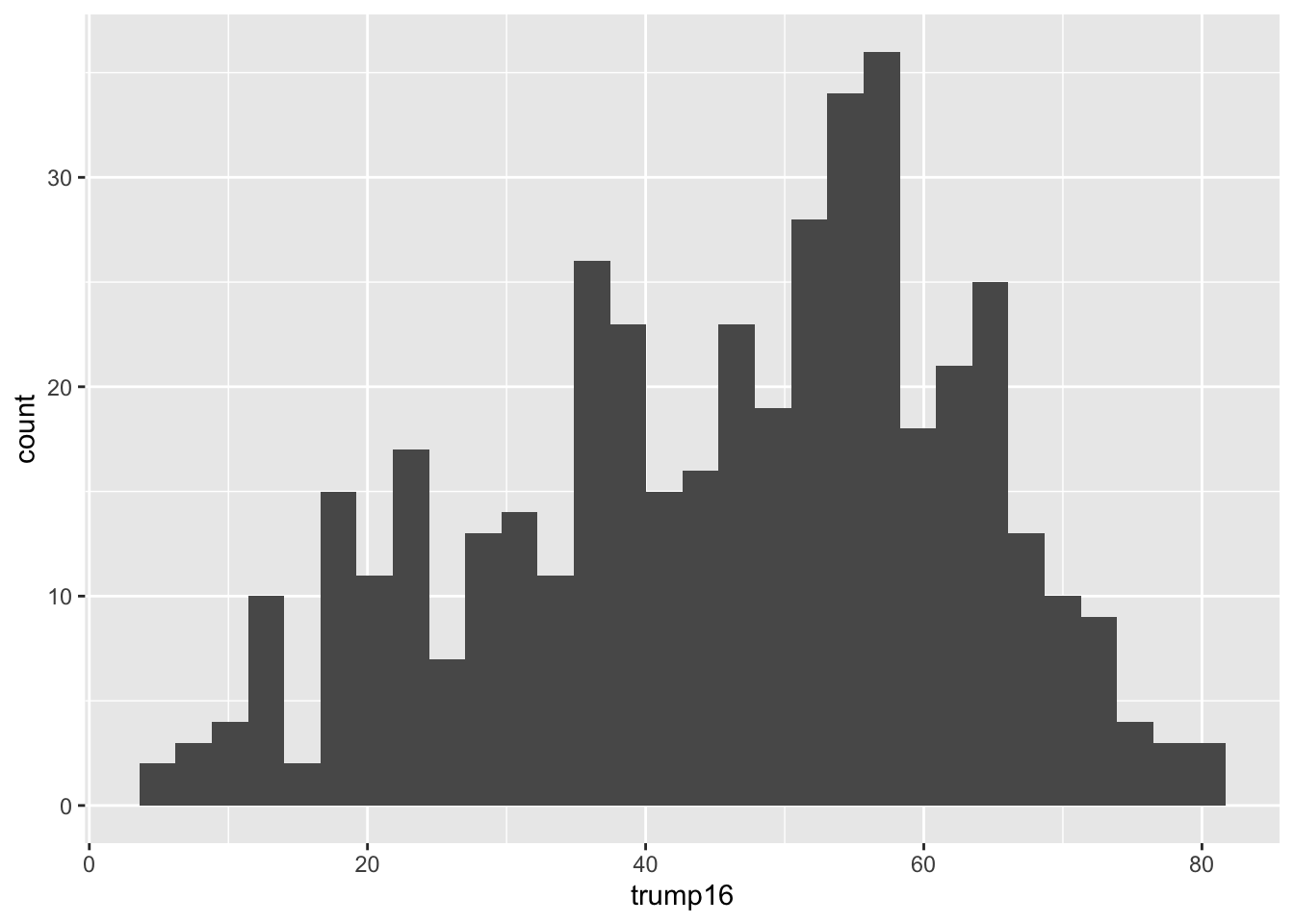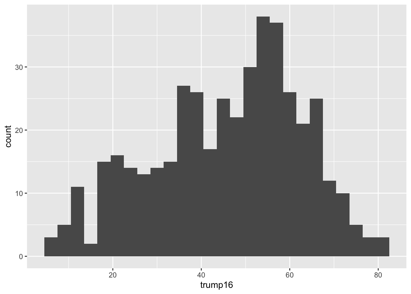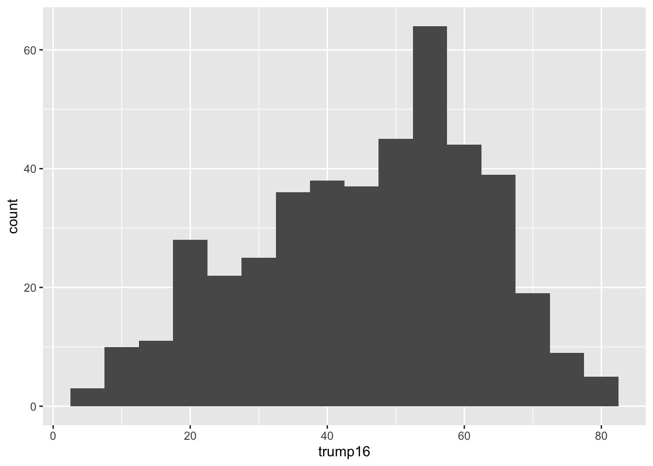 ggplot(gerrymander, aes(x = trump16)) +
