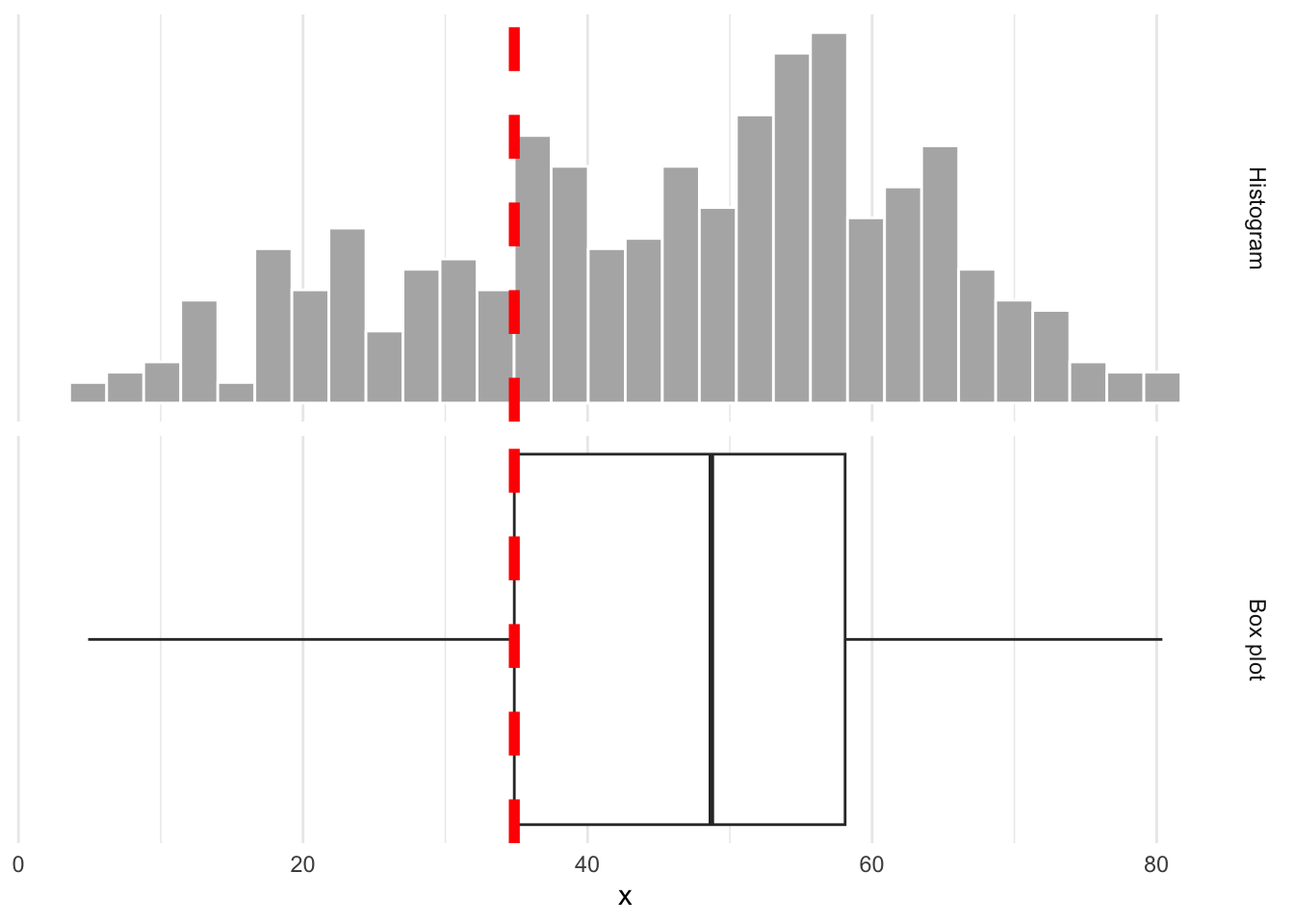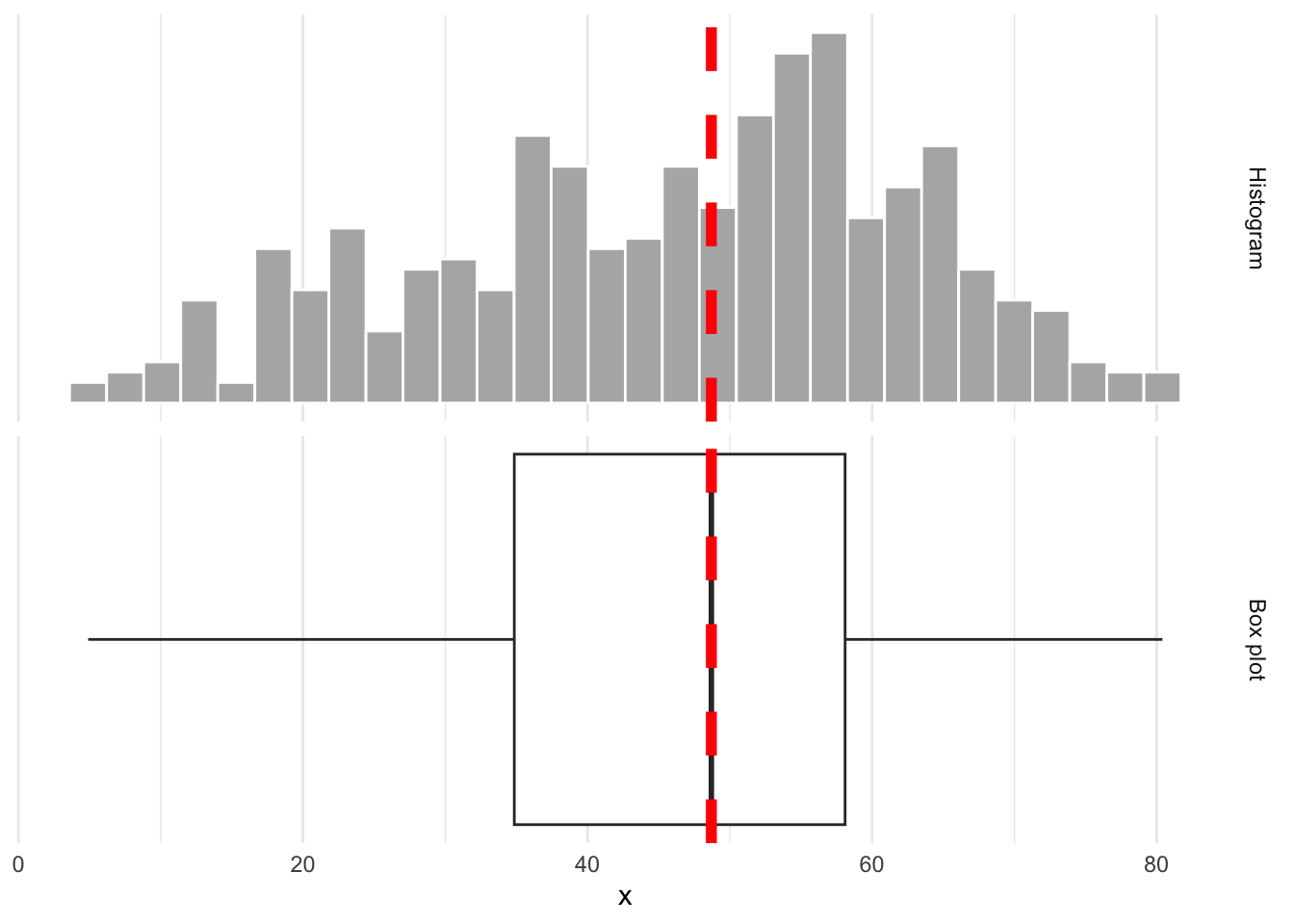 Numerical: histogram, box plot, density plot, etc.