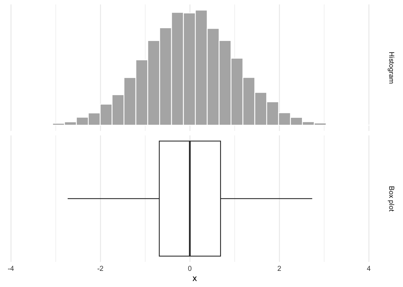 ?geom_boxplot):The upper whisker extends from the hinge to the largest value no further than 1.5 * IQR from the hinge (where IQR is the inter-quartile range, or distance between the first and third quartiles). The lower whisker extends from the hinge to the smallest value at most 1.5 * IQR of the hinge. Data beyond the end of the whiskers are called “outlying” points and are plotted individually.
