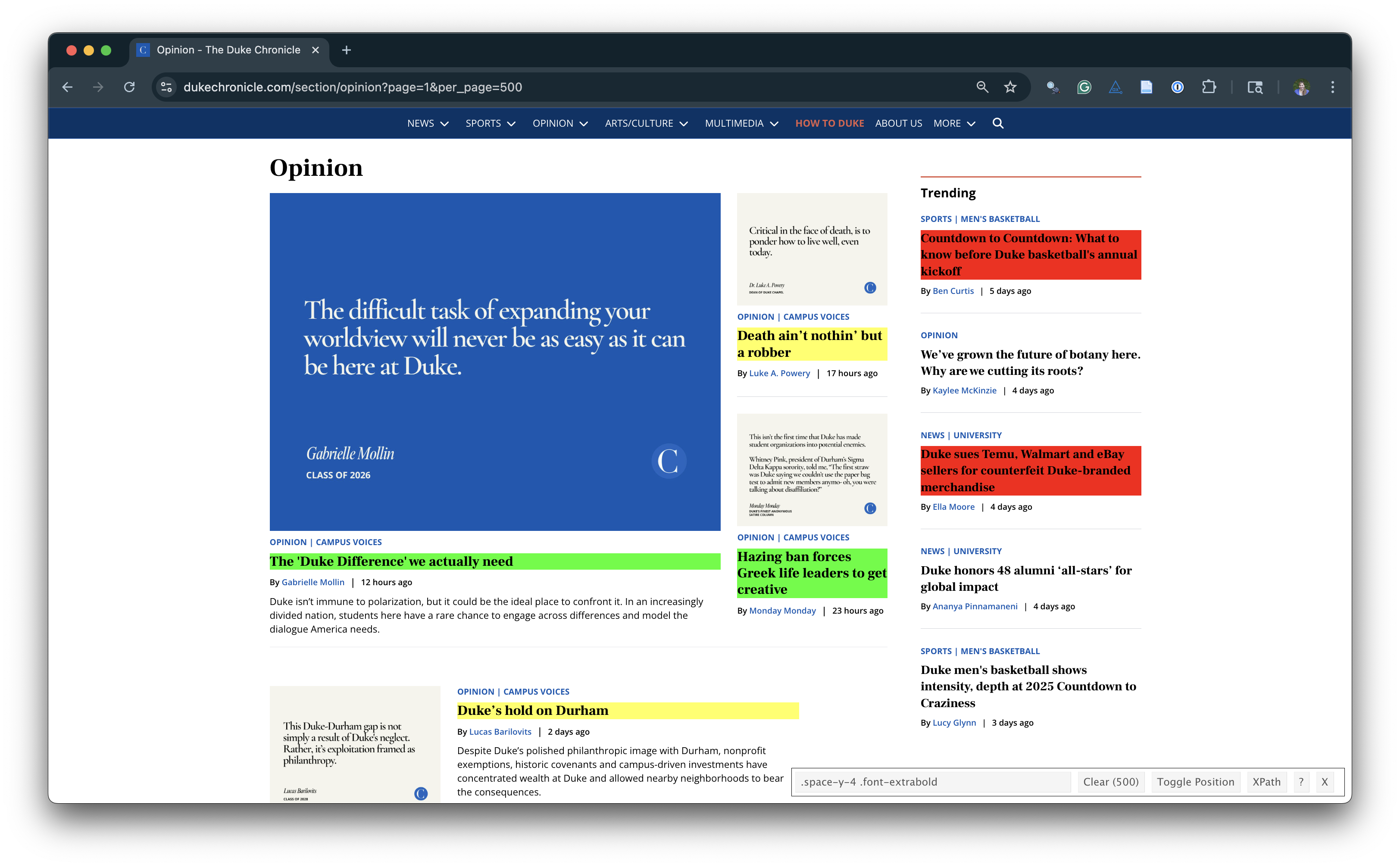 Go to https://www.dukechronicle.com/section/opinion?page=1&per_page=500.