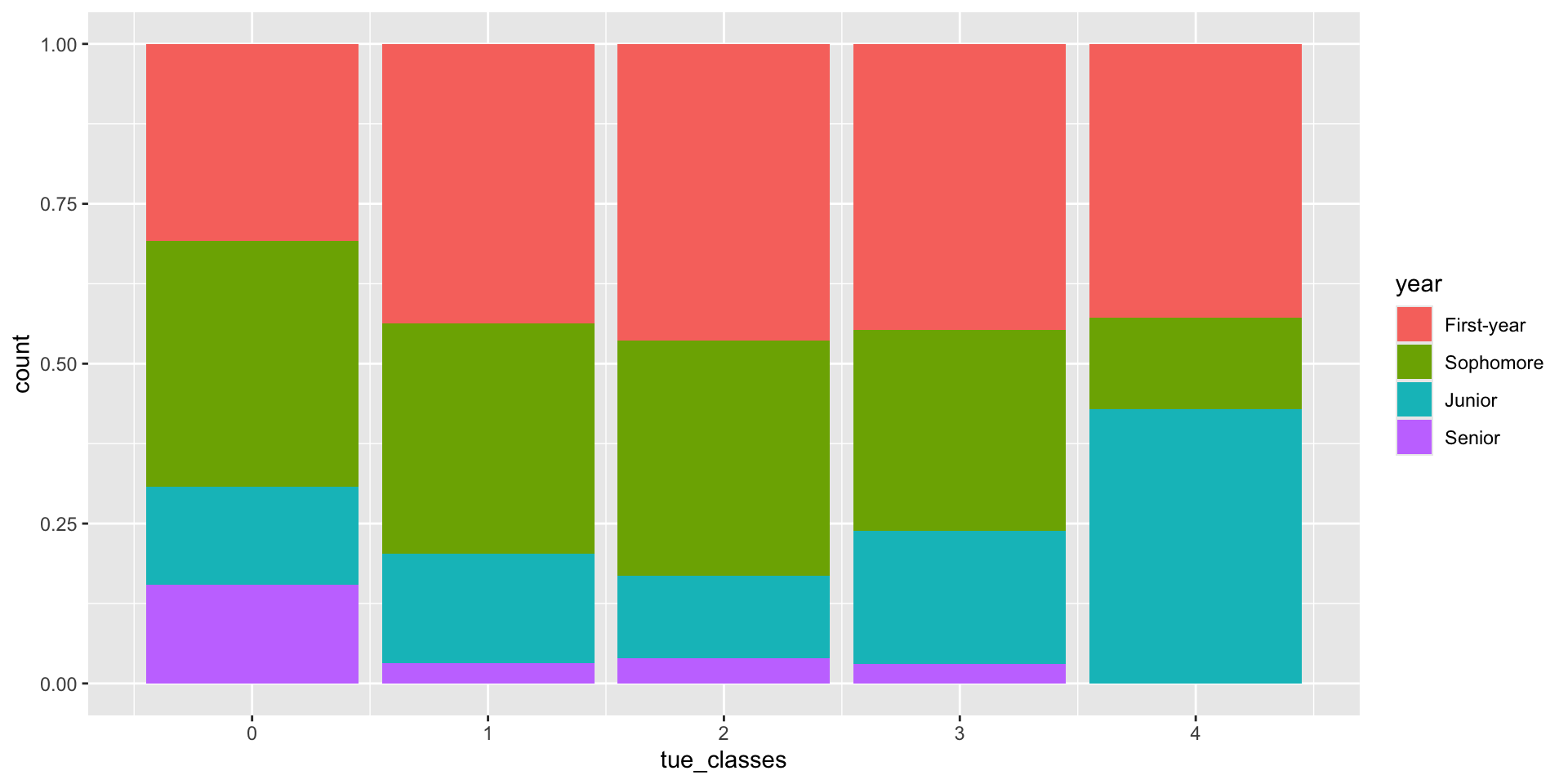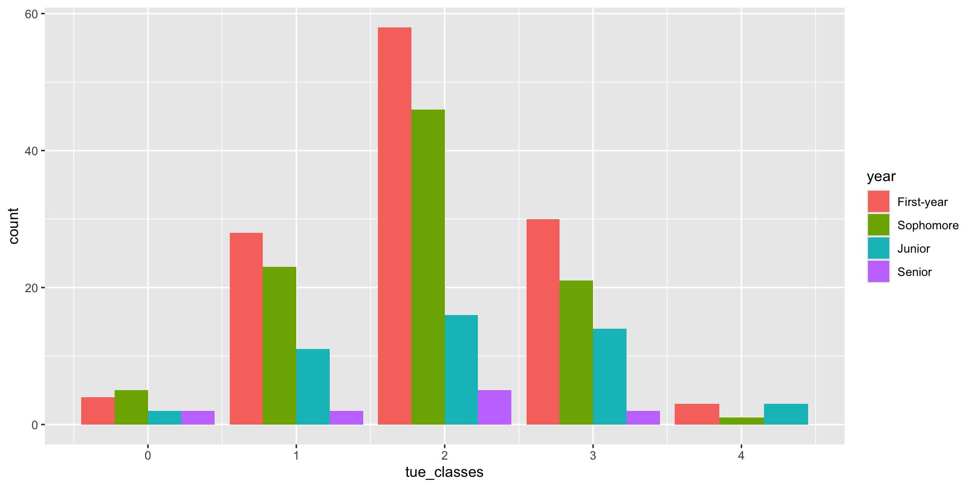 # ℹ abbreviated name: ¹`How many classes do you have on Tuesdays?`
