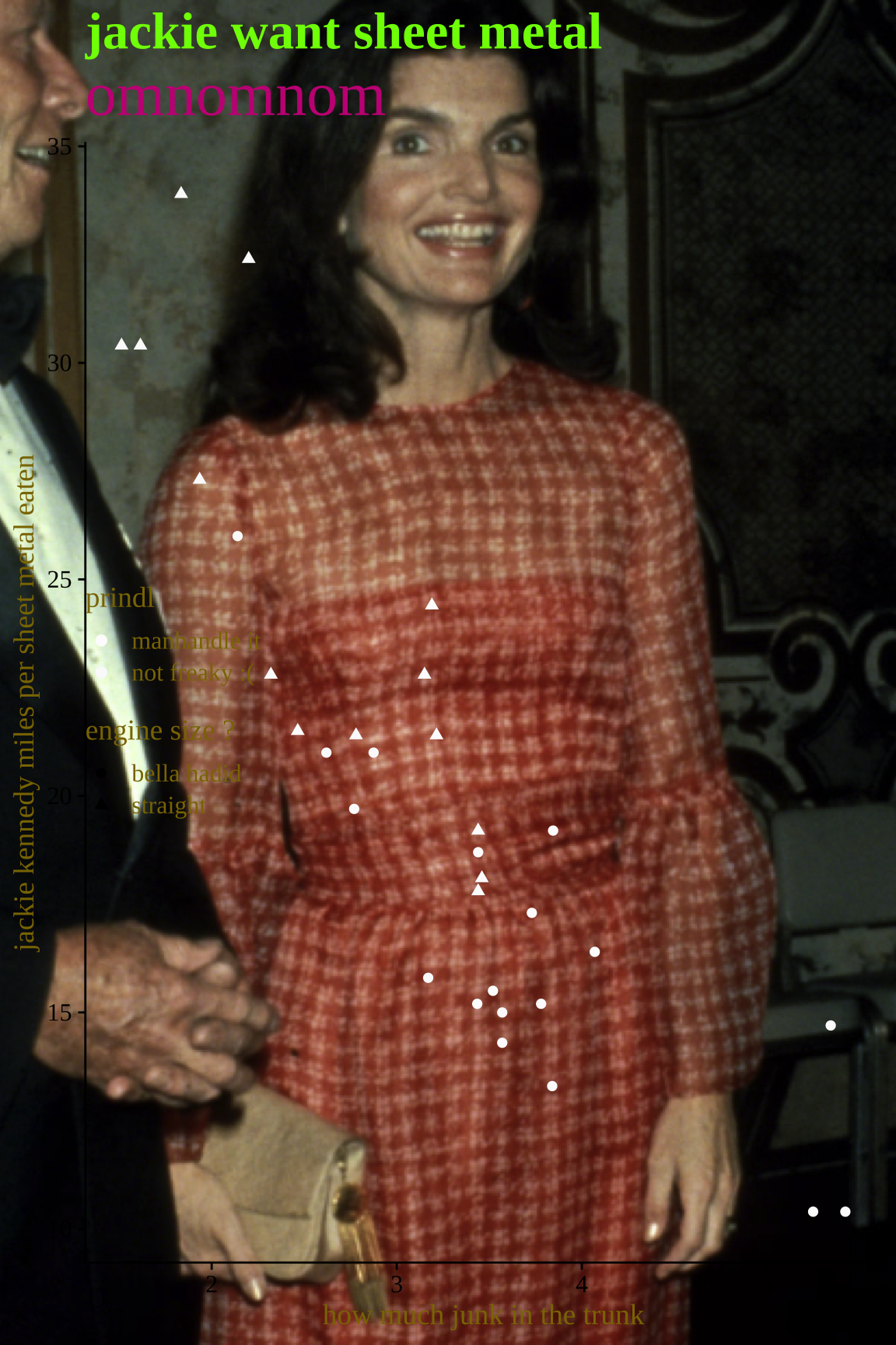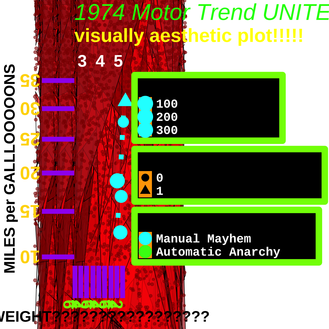 y = "MILES per GALLLOOOOONS",