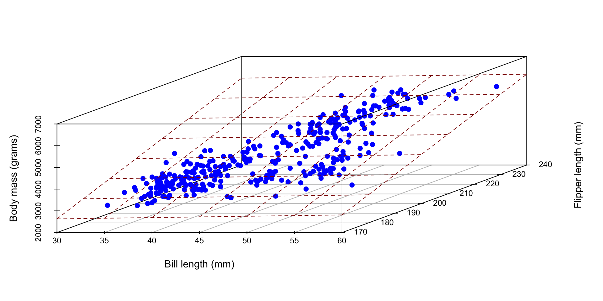 \[ \small\widehat{body~mass}=-5736+48.1\times flipper~length+6\times bill~length \]